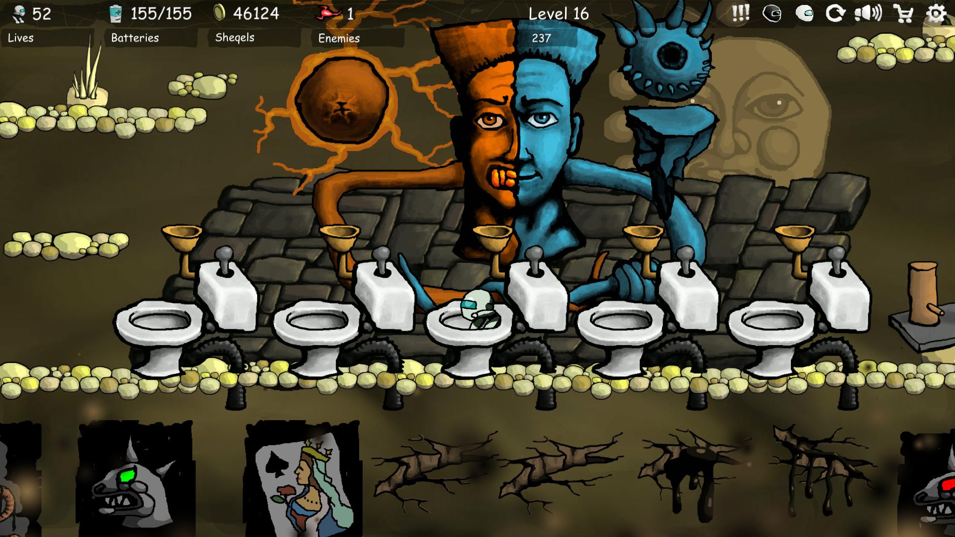 Platformer, shooter, maybe a little arcade. Some robot runs, jumps, shoots out all sorts of monsters. There is cruelty, a lot of blood and guts.